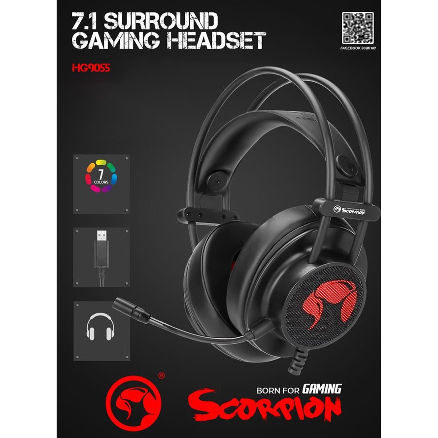 Hg9055 scorpion Clearance, Headset Gamer Marvo HG9055 Surround 7.1 USB Led 7 Cores - Login Informática Clearance
