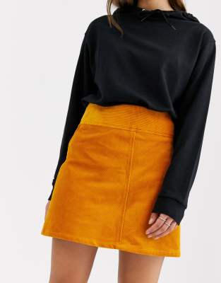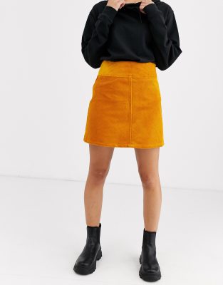 Jupe velours moutarde Clearance, Monki - Mini-jupe trapèze en velours côtelé - Jaune moutarde | ASOS Clearance