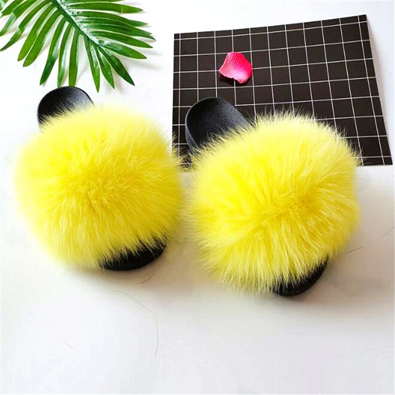 Aliexpress fluffy slippers Clearance, Women Non slip Fox Fur Slides Real Fur Clearance