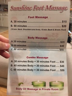 - Sunshine massage prices shop