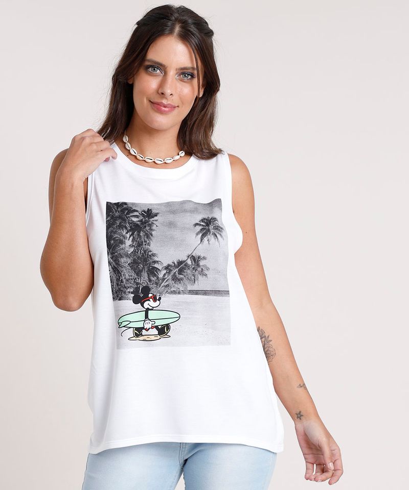 Regata feminina praia Clearance, Blusa de Praia Branca Feminina Decorada Regata Clearance
