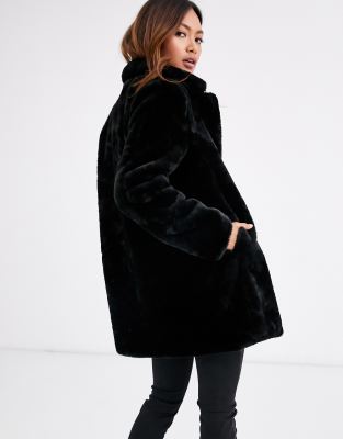Manteau long noir fourrure Clearance, Manteau long noir à fausse fourrure Clearance