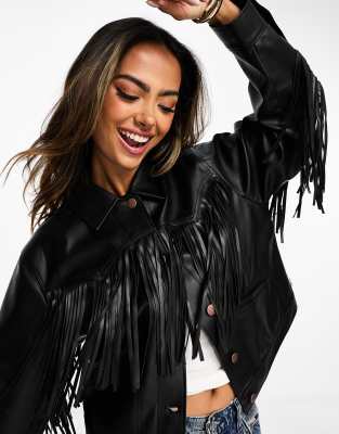 - Black leather fringe jacket shop
