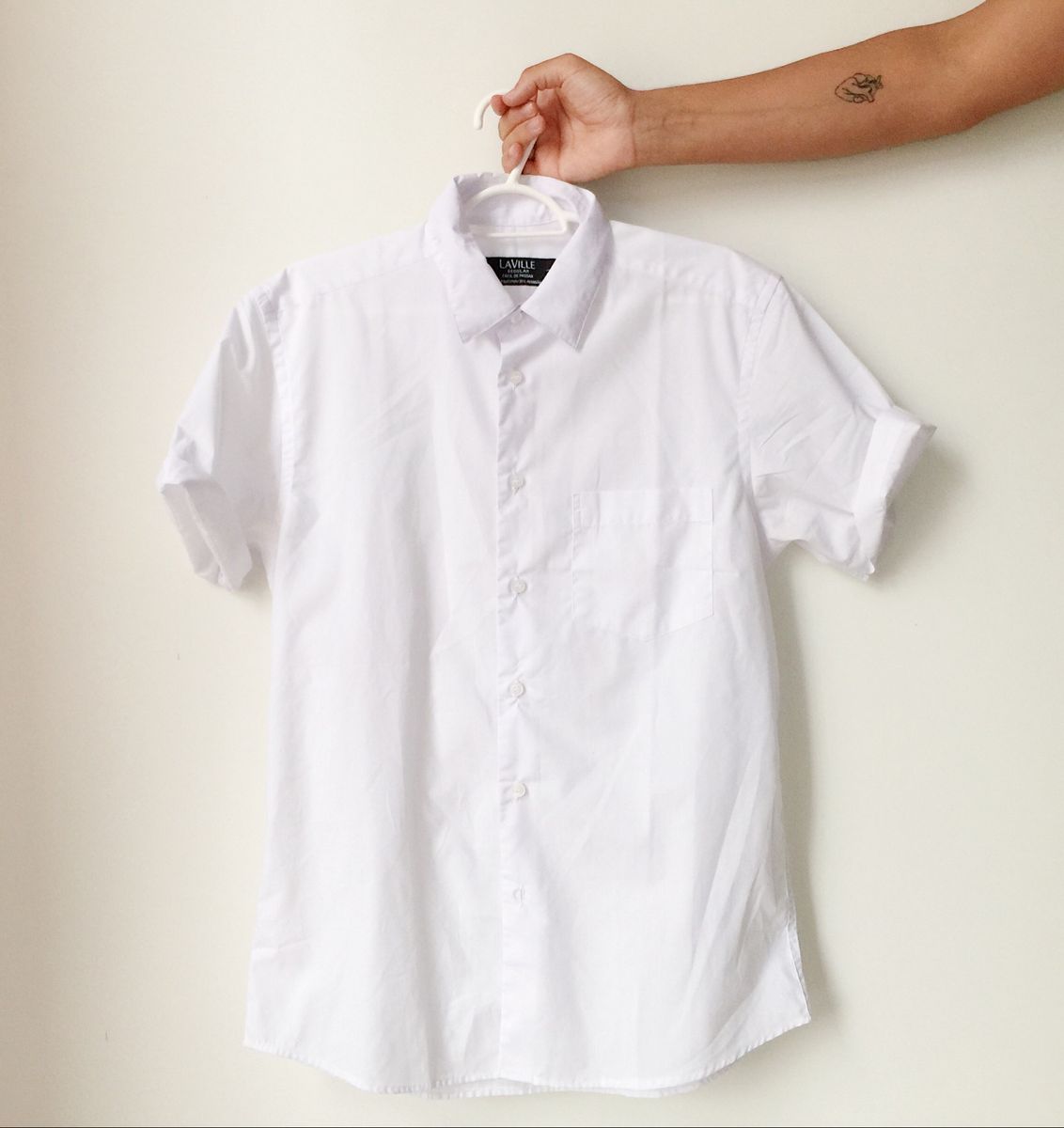- Camisa branca de botão masculina