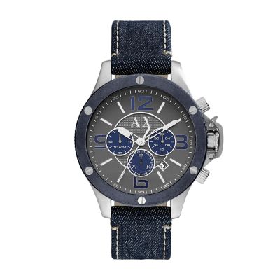 Armani ax1517 Clearance, Wellworn Chronograph Denim Watch - Blue Clearance