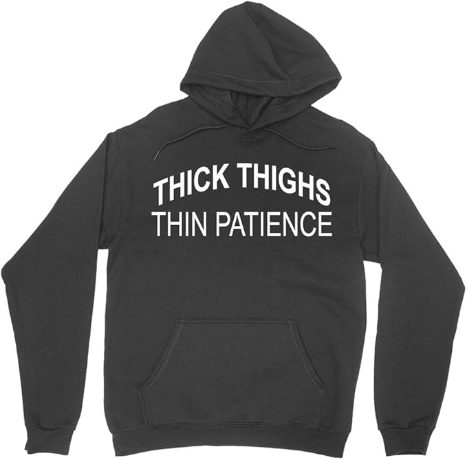 Thick thighs thin patience sweatshirt Clearance, Funny Slogan Gift Fashion Unisex Hoody Clearance