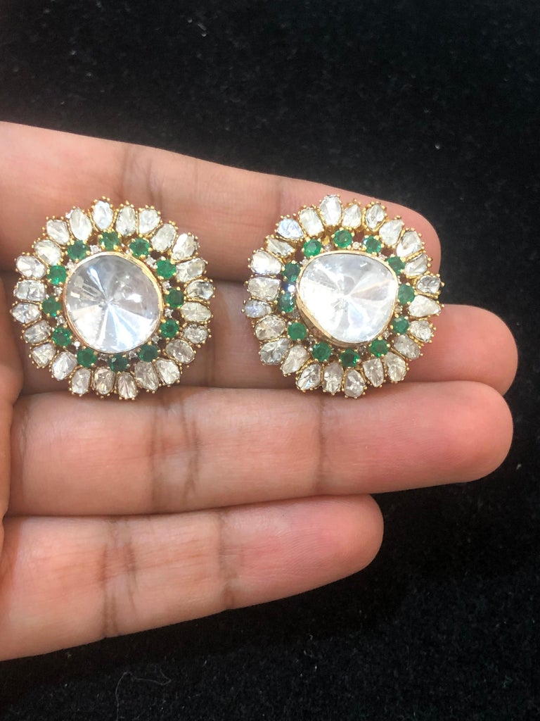 Uncut diamond stud earrings Clearance, 18 Karat Gold, Uncut Diamond and Emerald Earrings Stud Made in India For Sale at 1stDibs | uncut Clearance