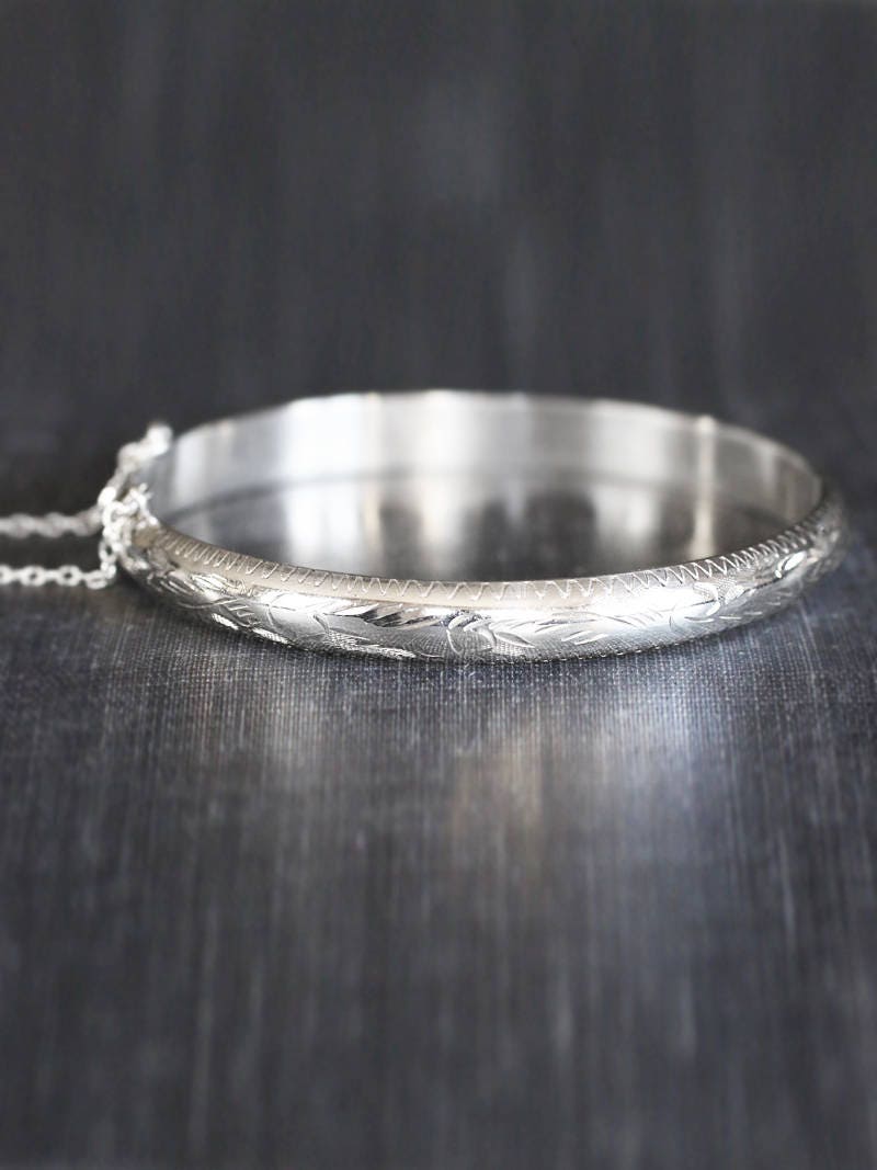 Thin silver cuff bracelet Clearance, Thin Sterling Silver Bangle, Small Flat Edge Vintage Cuff Bracelet with Clasp - Bella Clearance