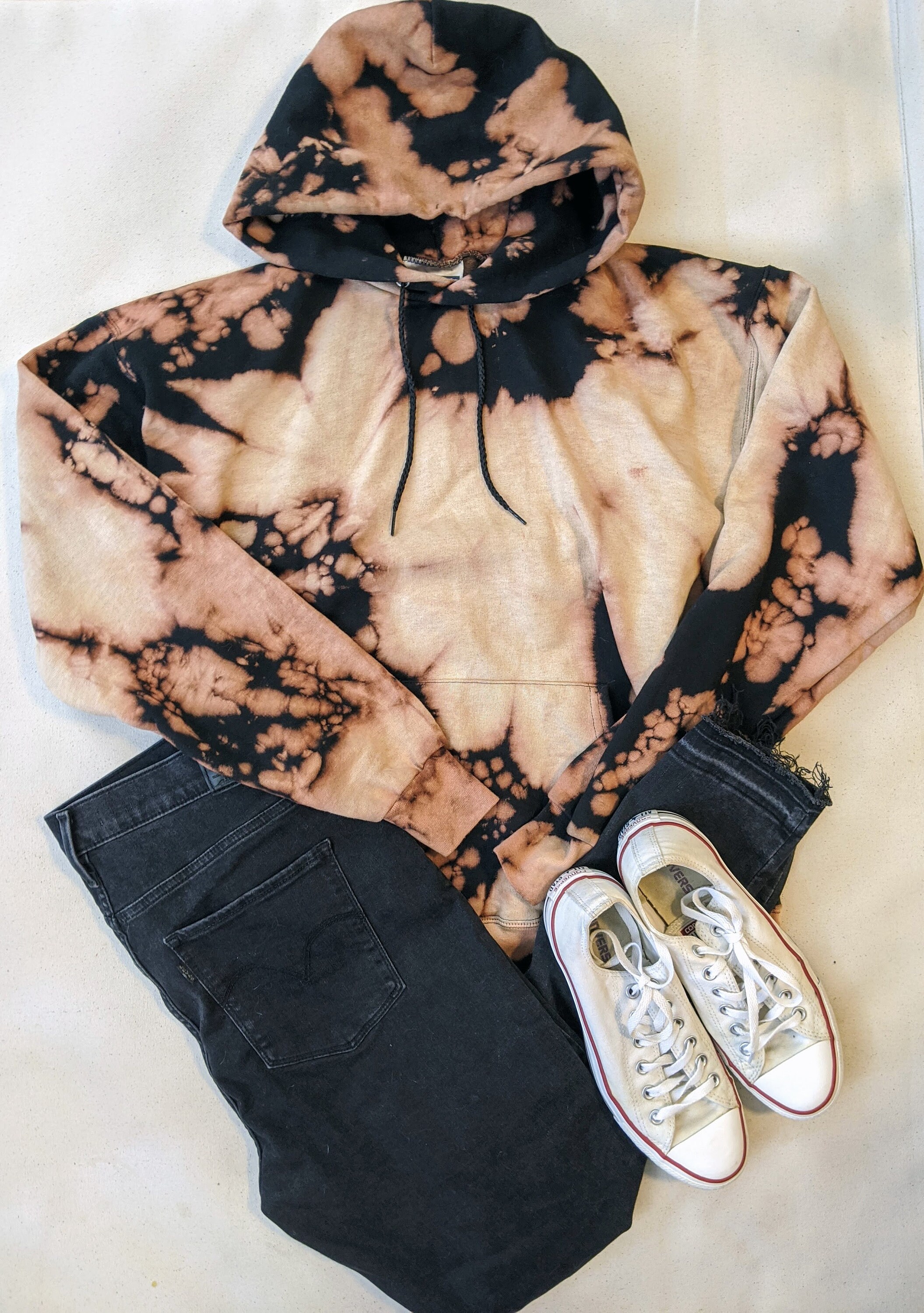 - Grey sweatshirt bleach tie dye