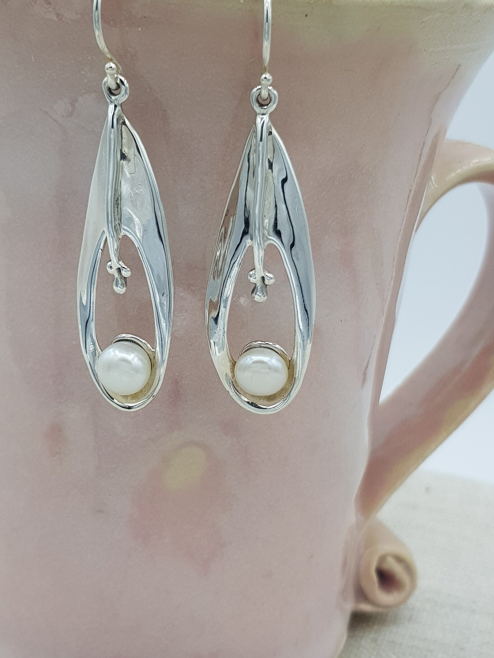 - Pearl dangle earrings silver sold
