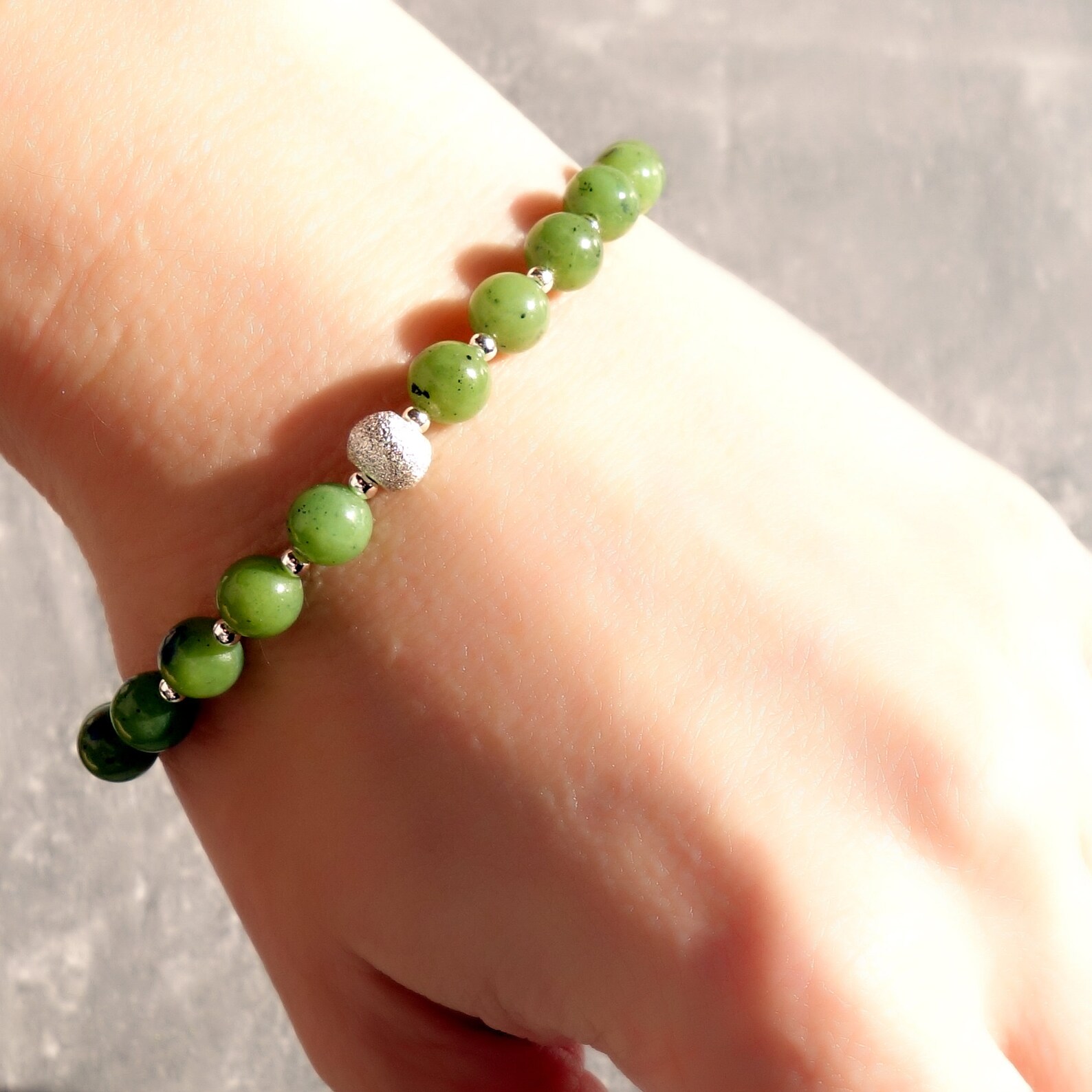 Nephrite bracelet Clearance, Genuine Nephrite Bracelet With Silver Beads Jade Bracelet - Etsy Clearance