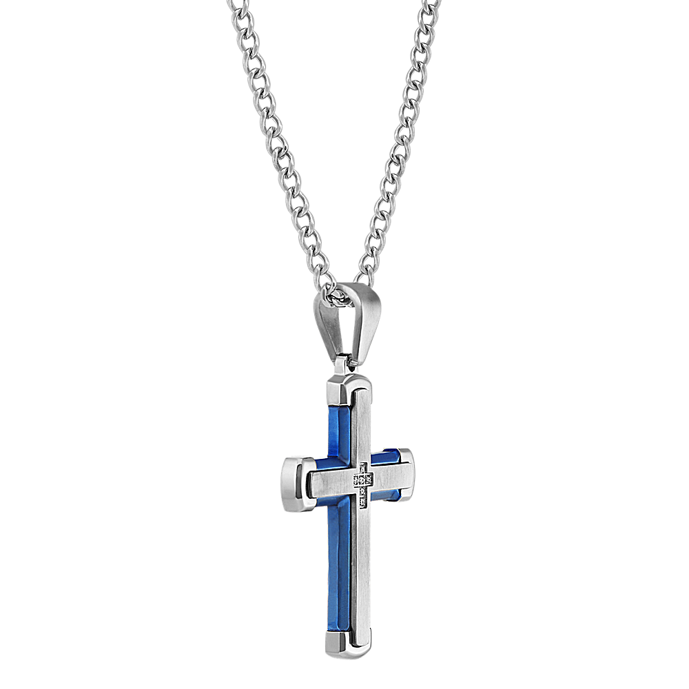 Men's 24 inch cross necklace Clearance, 24 inch Mens Stainless Steel Cross Necklace with Faux-Wood Inlay | Shane Co. Clearance