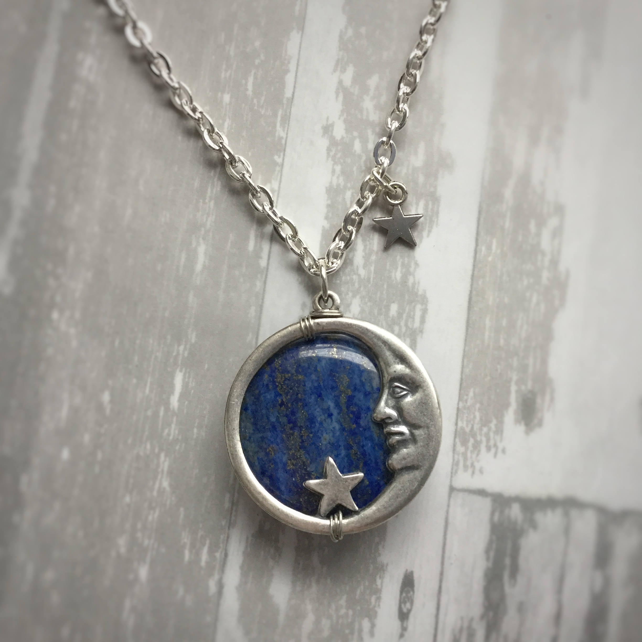 Moon face necklace Clearance, Lapis Lazuli Moon Face Necklace, Made to order Clearance
