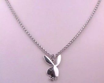 Chain playboy Clearance, 316L Stainless Steel Rope Chain with Oval Playboy Logo Pendant - Tanga Clearance