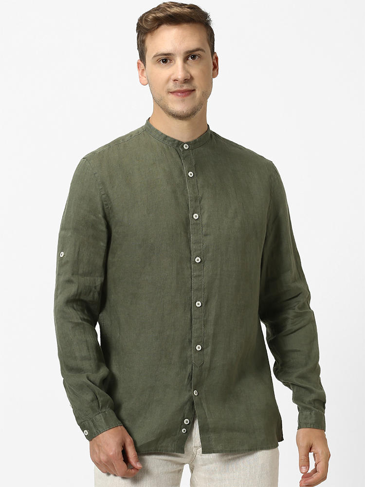 - Olive linen shirt mens