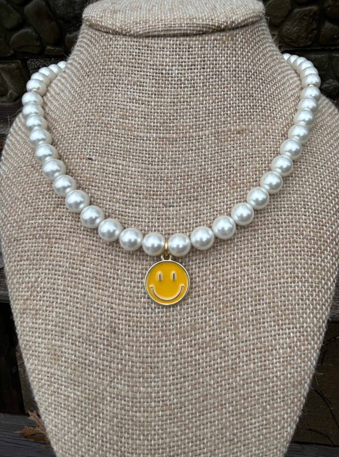 - Smiley face and pearl necklace outlet