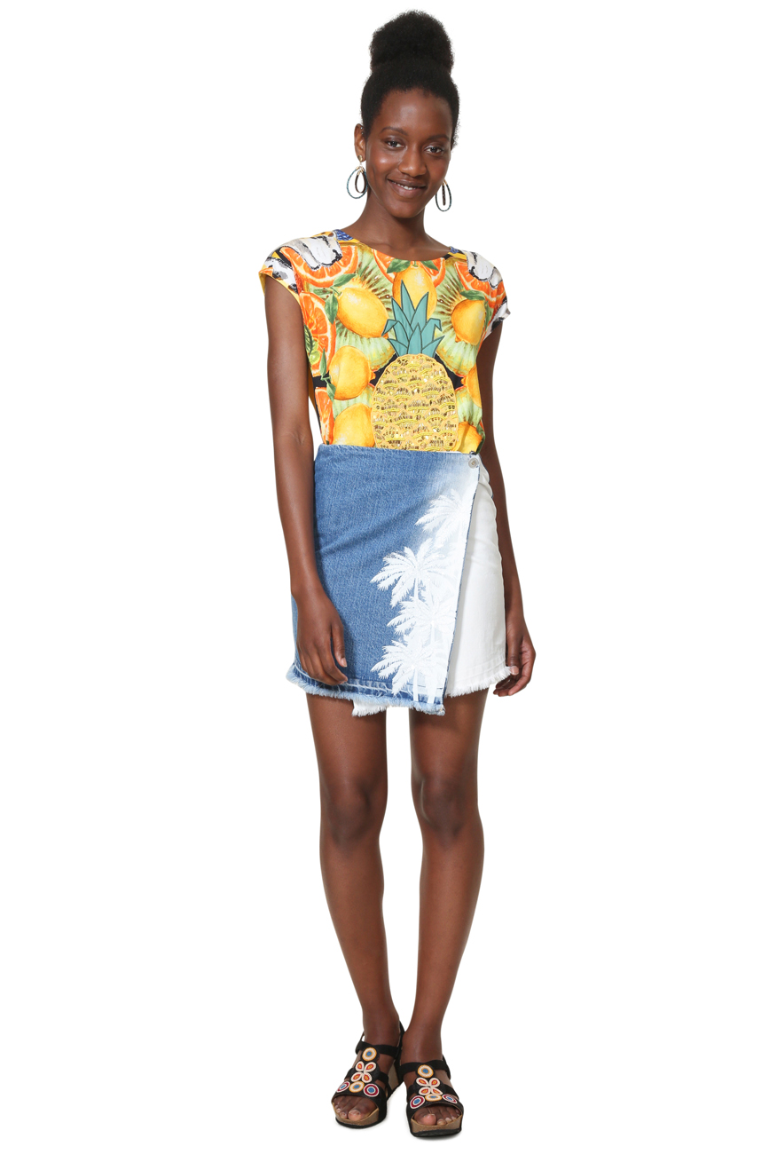 - Shopping White denim mini wrap skirt