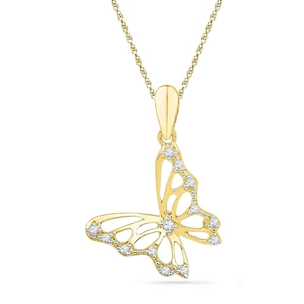Gold and diamond butterfly necklace Clearance, Macey Worldwide Jewelry - 10K Yellow Gold Diamond Butterfly Necklace Pendant 1/12 Ctw. - Walmart Clearance