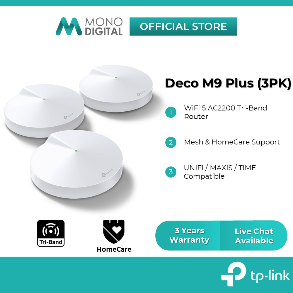 Unifi deco m9 Clearance, TP-LINK Deco M9 Plus AC2200 Mesh WiFi Wireless Tri-Band Router For Unifi Turbo/Maxis Fiber/Time Clearance