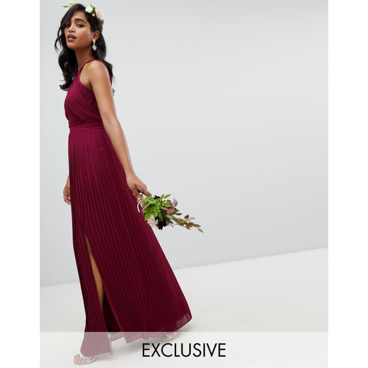 - Tfnc pleated bridesmaids maxi dress in burgundy clearance