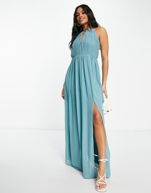 Tfnc london maxi dress Clearance, TFNC Bridesmaid chiffon maxi dress with pleated front and open back detail in sea blue | ASOS Clearance