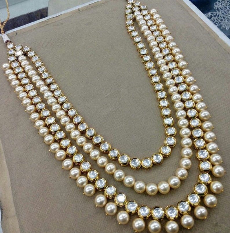 - Pearl kundan long necklace outlet