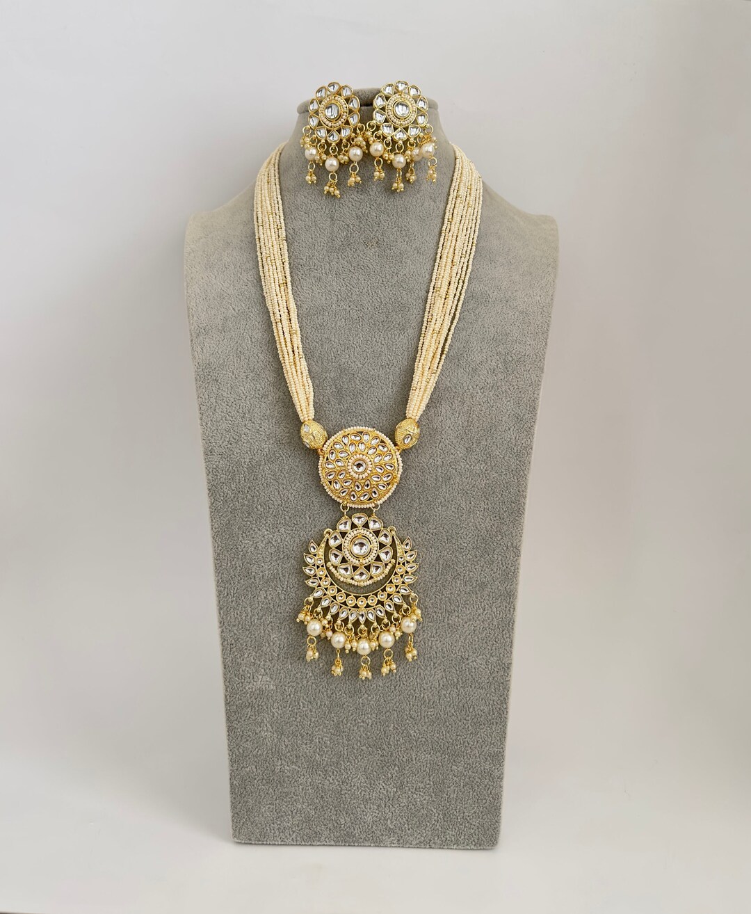 - Pearl kundan long necklace clearance