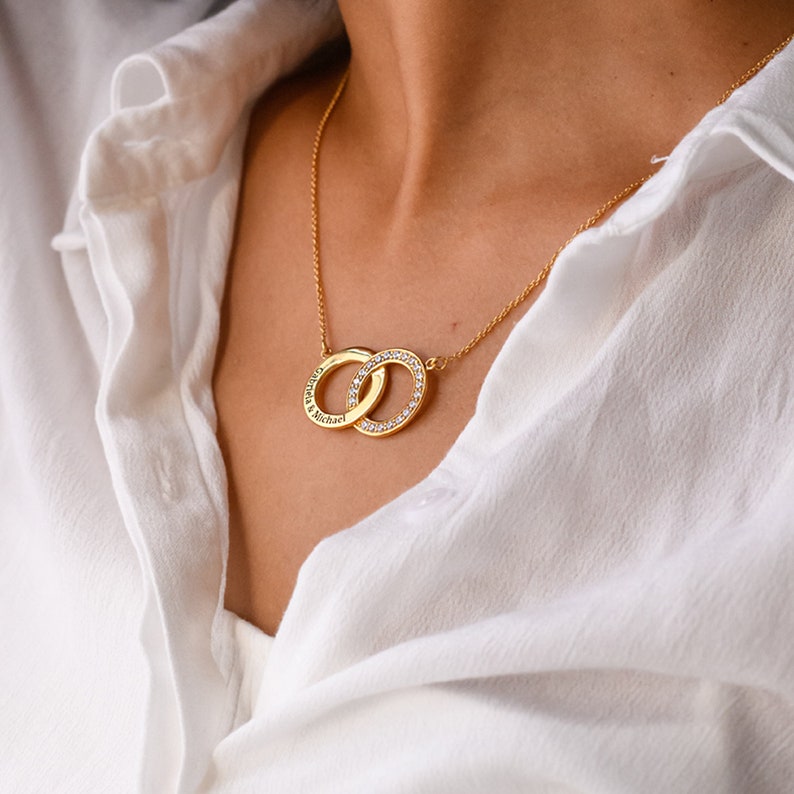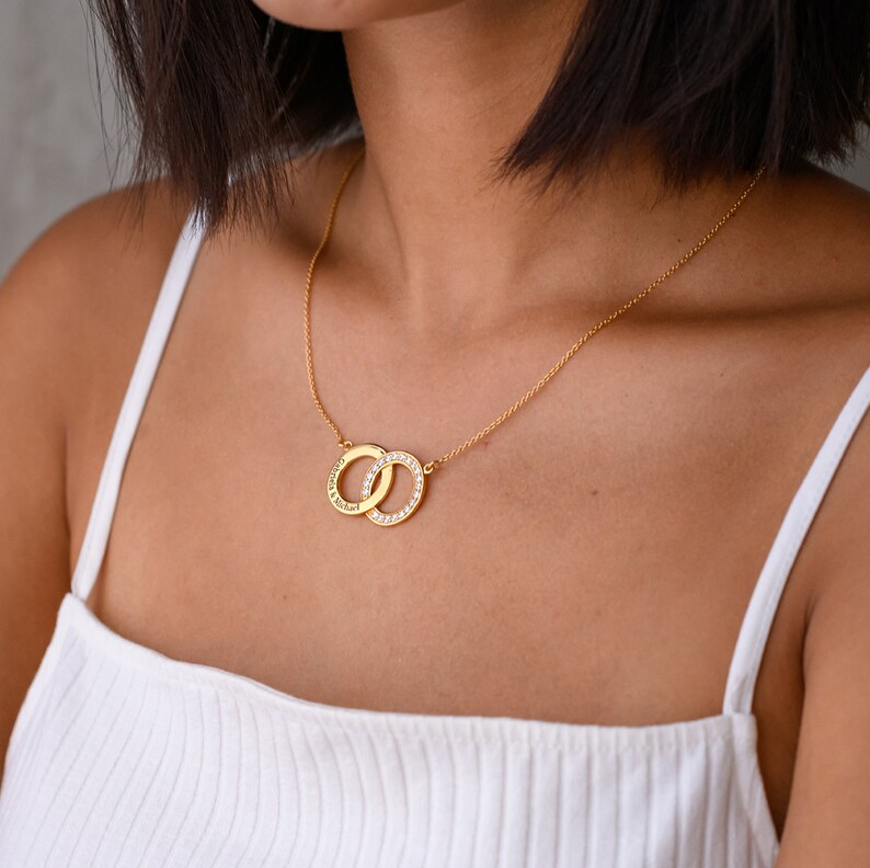Engraved interlocking circle necklace Clearance, Custom Engraved 2 Interlocking Circle Pendant Necklace Gold - Etsy Clearance