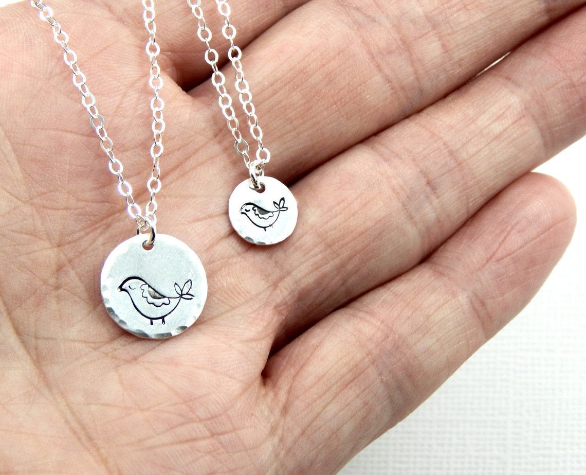 Mama bird and baby bird necklace Clearance, Mama Bird and Baby Bird Necklace Sterling Silver and Fine - Etsy Clearance