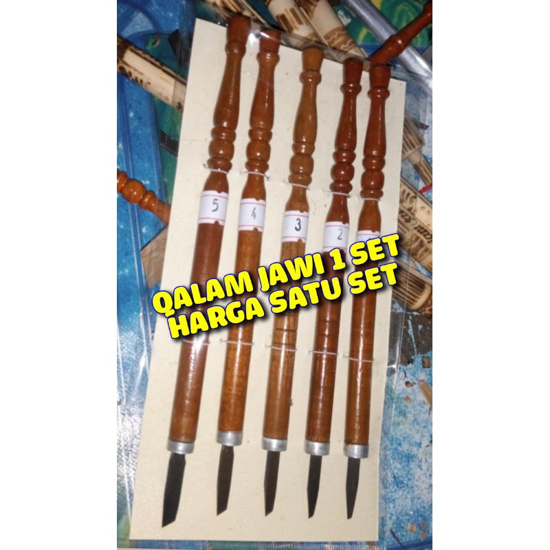 Handam qalam Clearance, five wooden pencils lined up on a blue surface Clearance