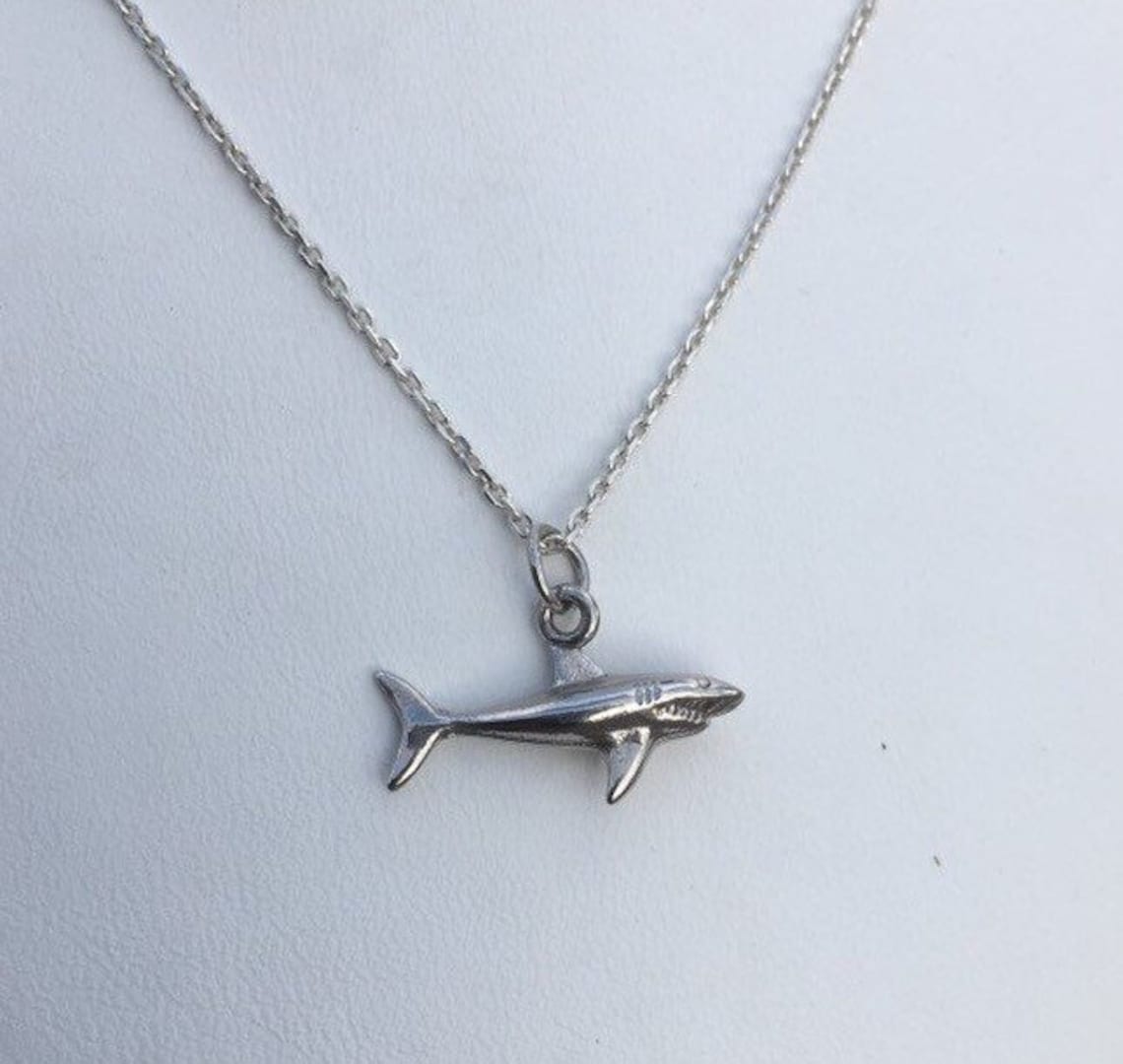 Silver shark necklace Clearance, Silver shark necklace, large sterling silver and genuine natural diamond shark pendant, sea life Clearance