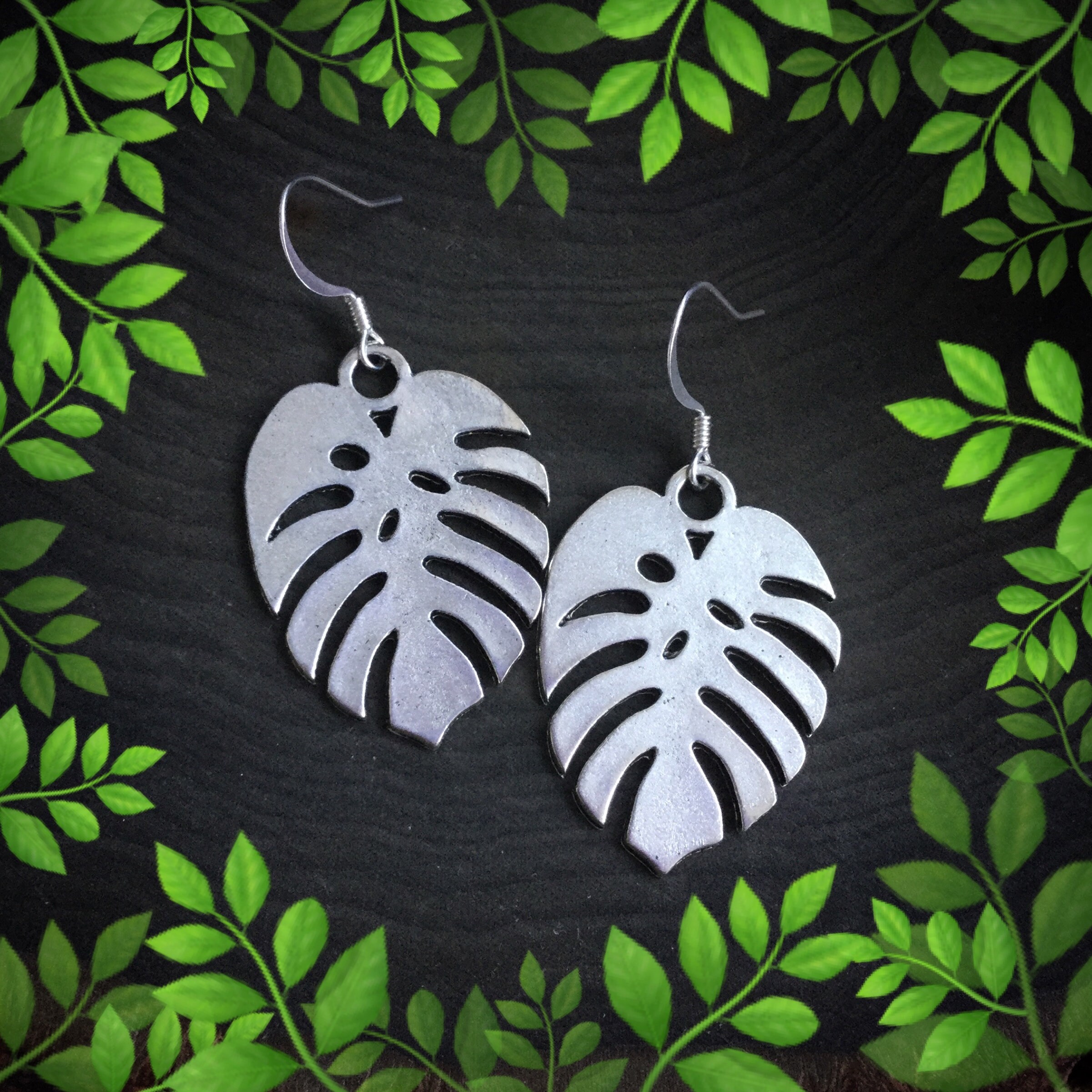 Monstera earrings Clearance, Small Monstera Leaf Earrings - SilverBotanica - Handmade Jewelry designed by Alicia Hanson and Clearance