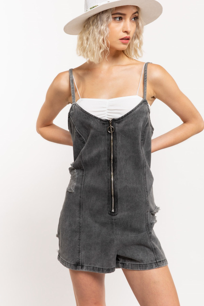 - Distressed denim romper free shipping