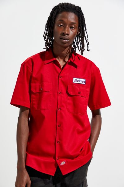 - Red short sleeve button up shop
