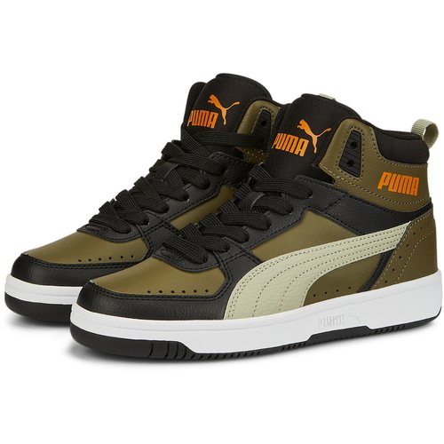 Puma sneaker 36 Clearance, Puma Rebound JOY Blocked Mid-Top Sneaker Kinder deep olive-pebble gray-black-orange brick 36 Clearance