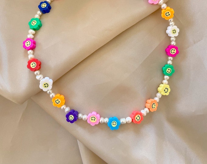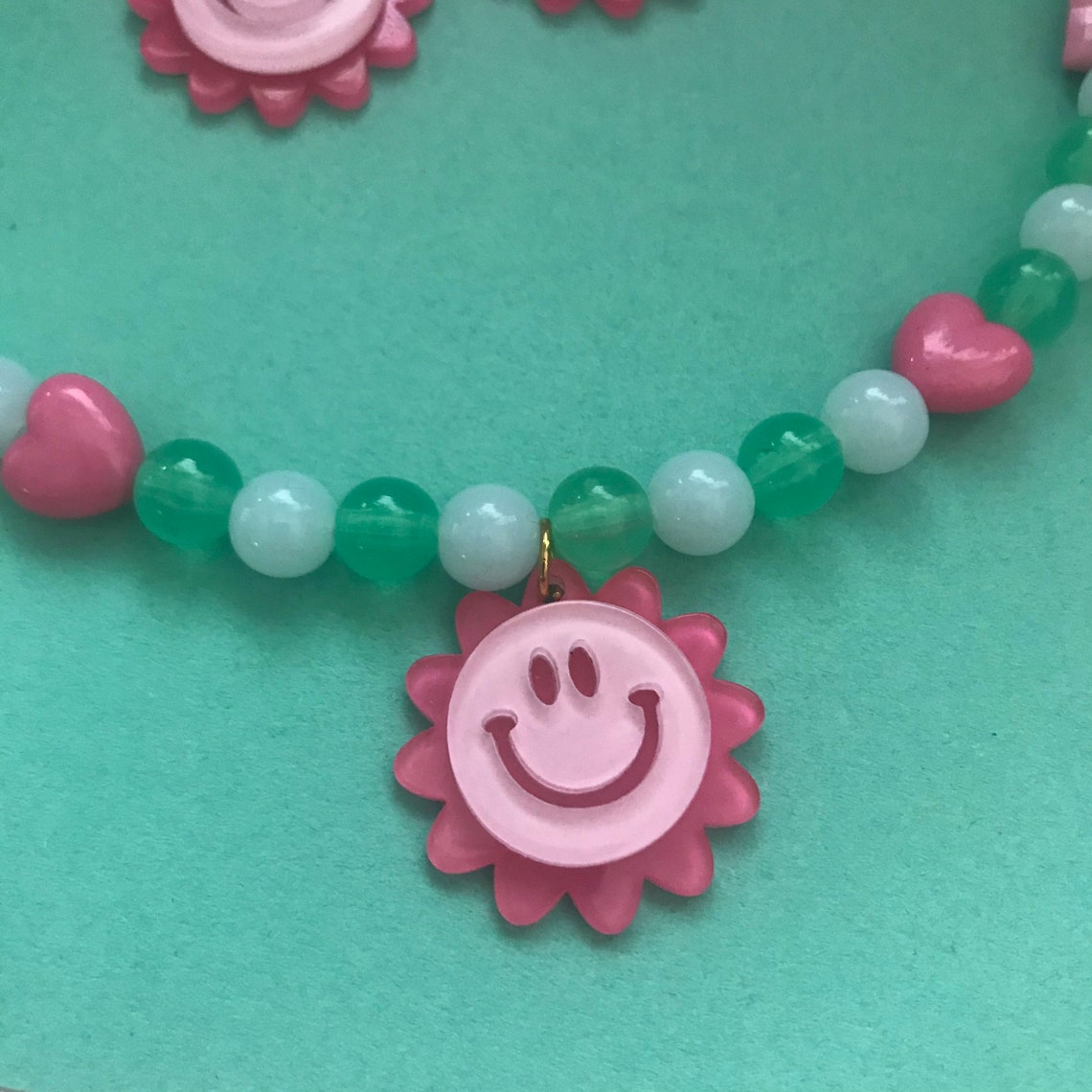 Smiley face flower necklace Clearance, Smiley Flower Necklace | Etsy Clearance