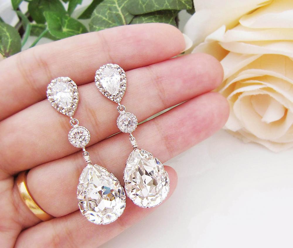 White earrings for wedding Clearance, Wedding Bridal Jewelry Bridal Earrings Bridesmaid Earrings Clear White Swarovski Crystal And Clearance