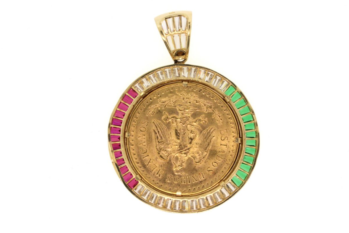 Gold peso pendant Clearance, 14k Gold Mexican pesos pendant and rolled chain No visible signs of wear. Solid gold chain and Clearance