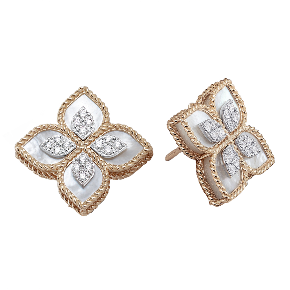 Roberto coin princess flower diamond earrings Clearance, Roberto Coin Princess Flower MOP & Diamond Post Earrings Rose & White Gold | 8882784AHERX Clearance