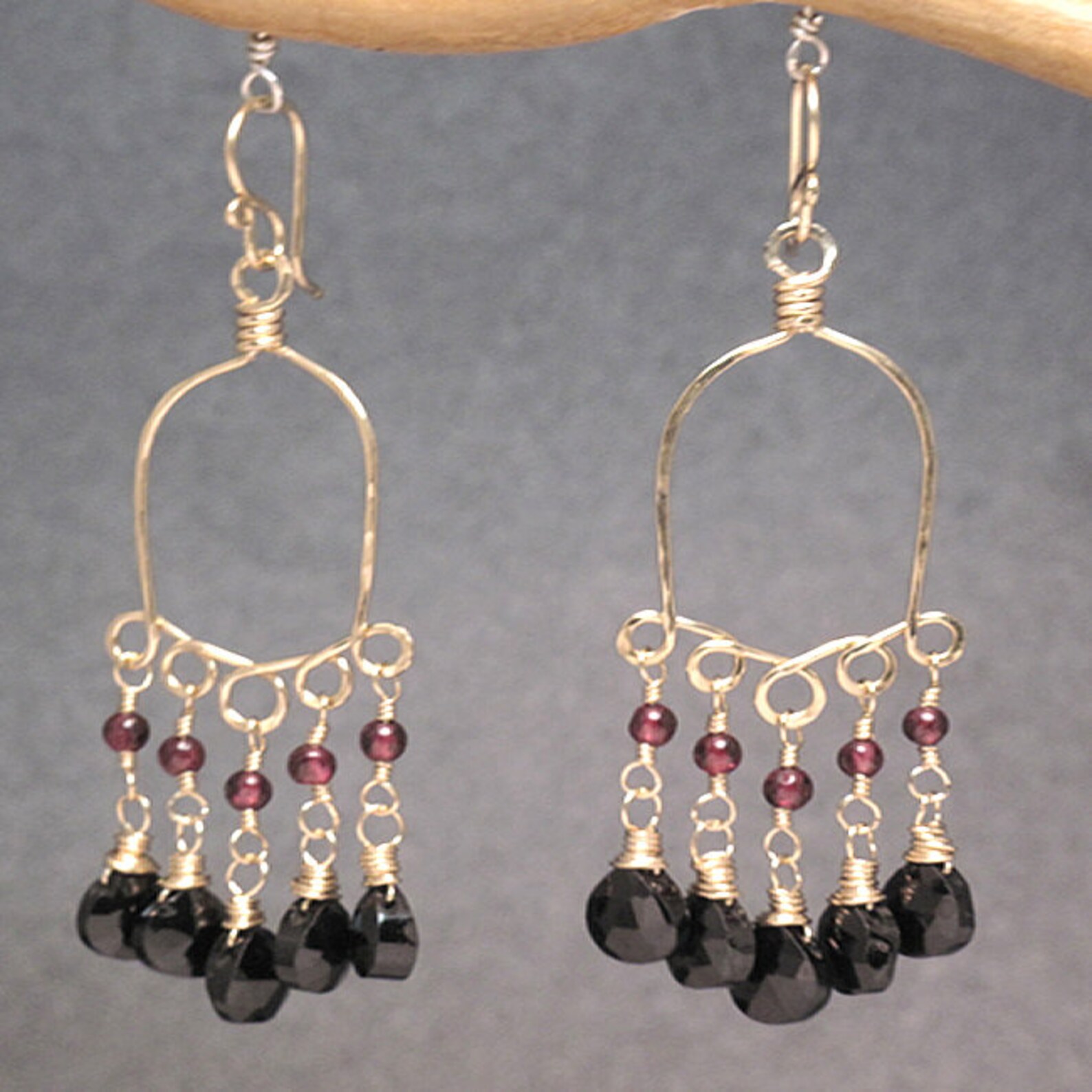 Chandelier hoops Clearance, Hammered chandelier hoops with garnet and black spinel Calypso | Etsy Clearance