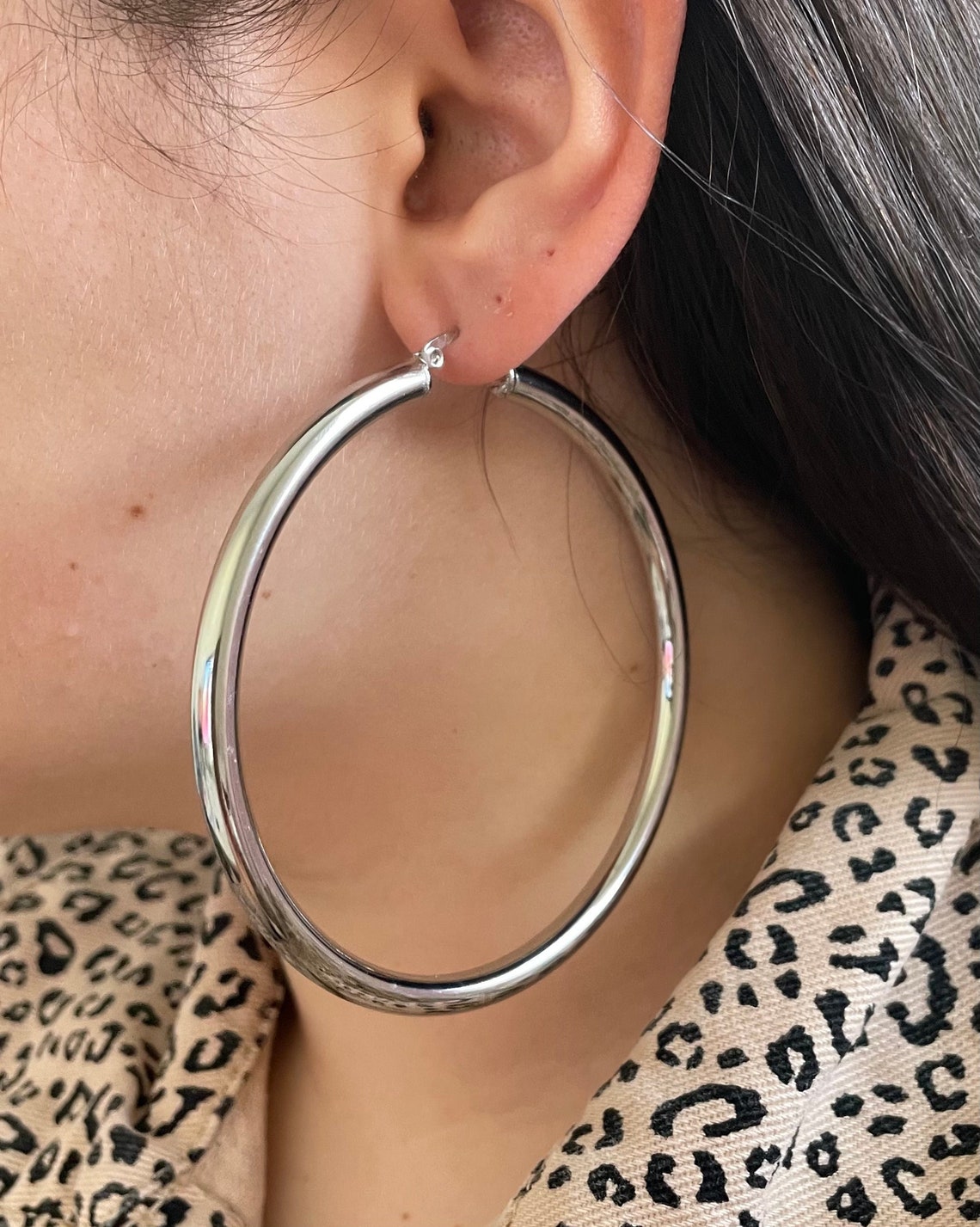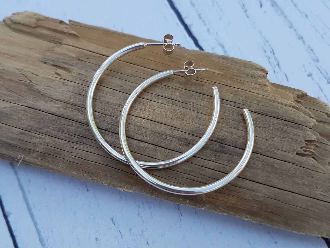 Large silver hoops Clearance, Silver Chunky Silver Hoops Medium Size Large Hoop Trendy | Etsy Clearance