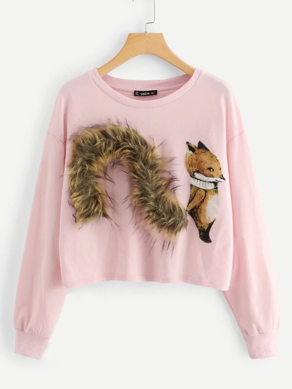 Shein fox sweater Clearance, Fox Patch Sweatshirt | SHEIN IN Clearance