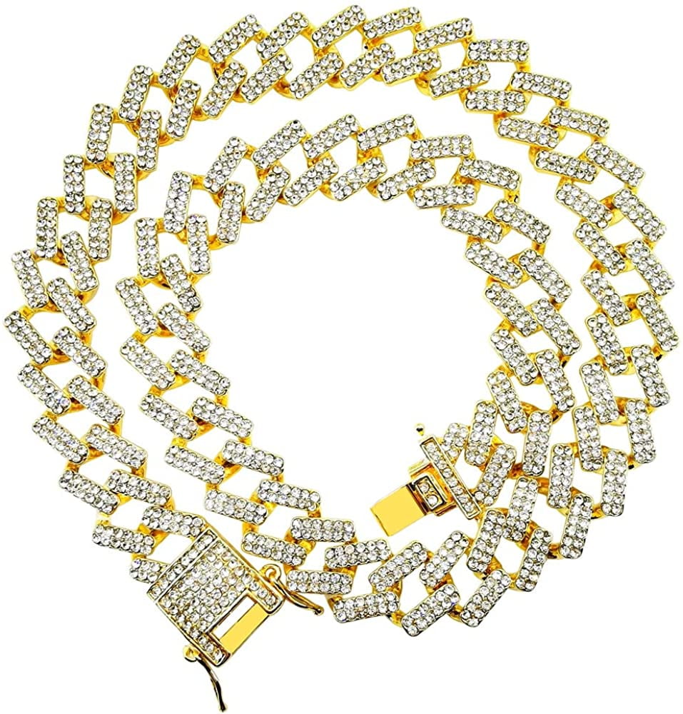Hh bling empire Clearance, HH Bling Empire Gold Tennis and Cuban Link Chain for Men,Iced Out Mens Diamond Cuban Chain Clearance