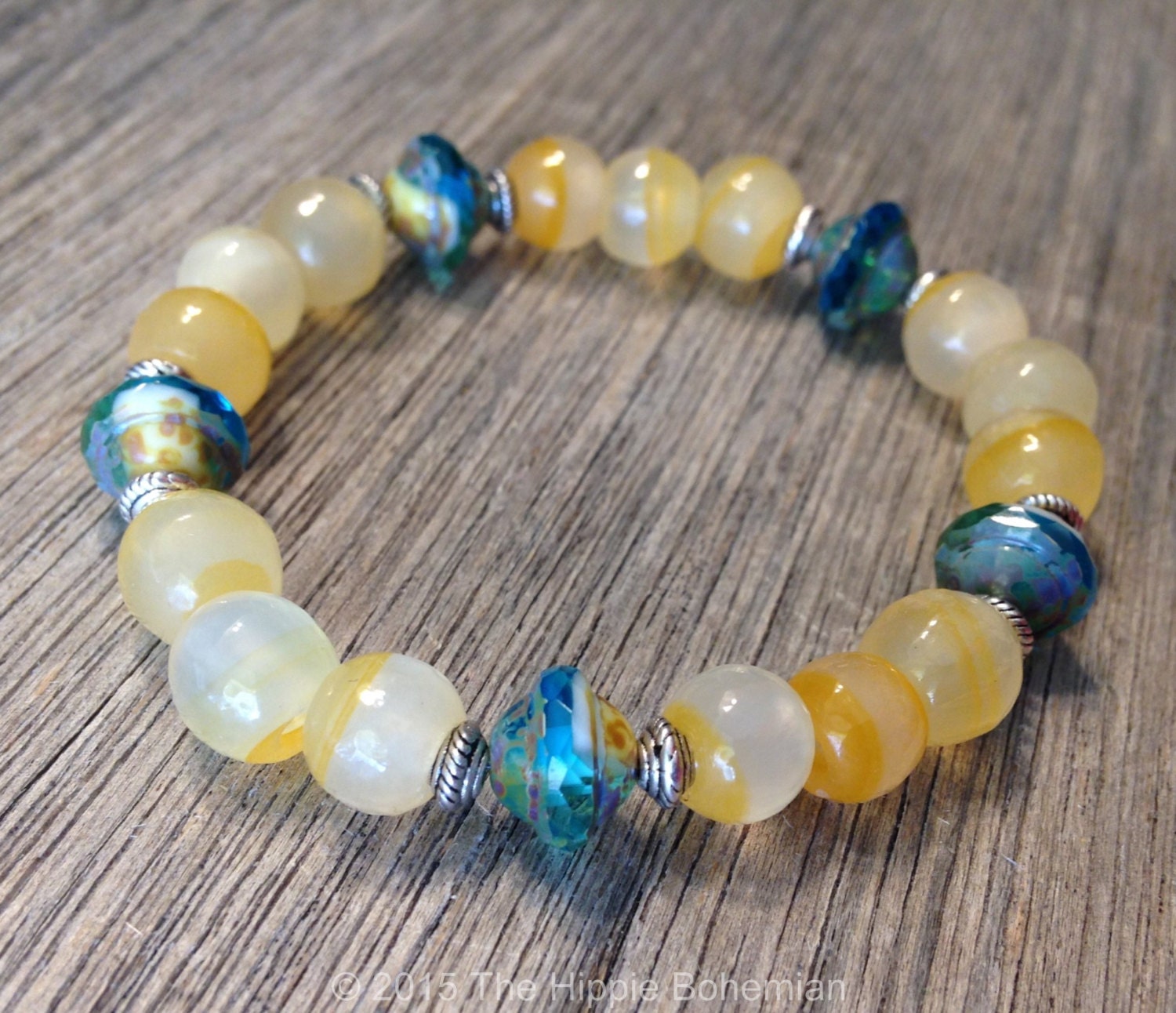 Yellow and blue bracelet Clearance, Yellow and Blue Bracelet Beaded Handmade by TheHippieBohemian Clearance