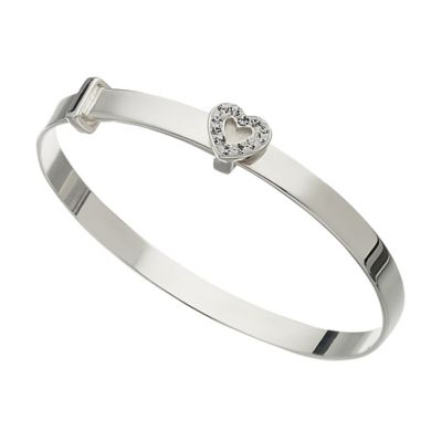 H samuel silver bangle Clearance, Children's Sterling Silver & Crystal Heart Expander Bangle - H. Samuel the Jeweller Clearance