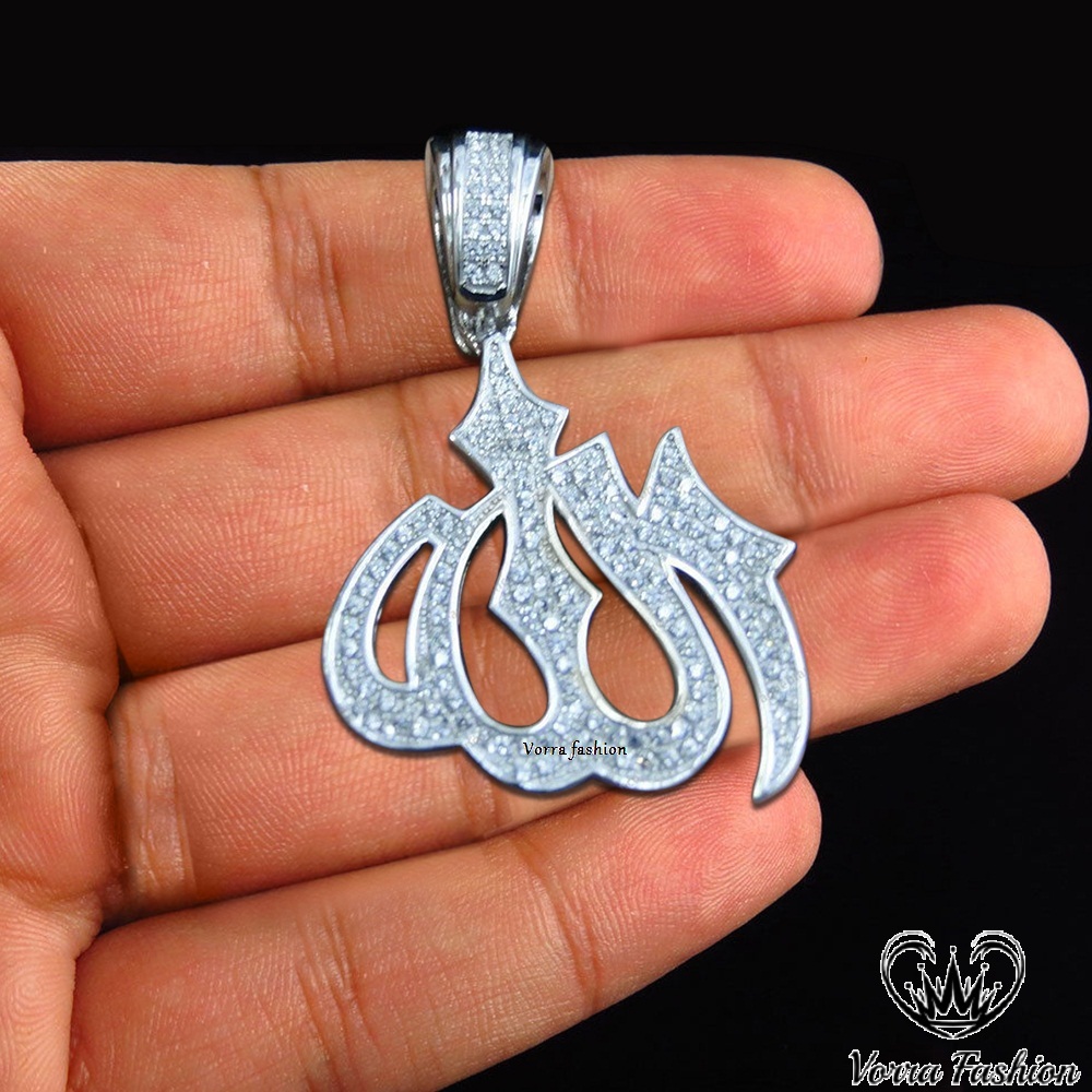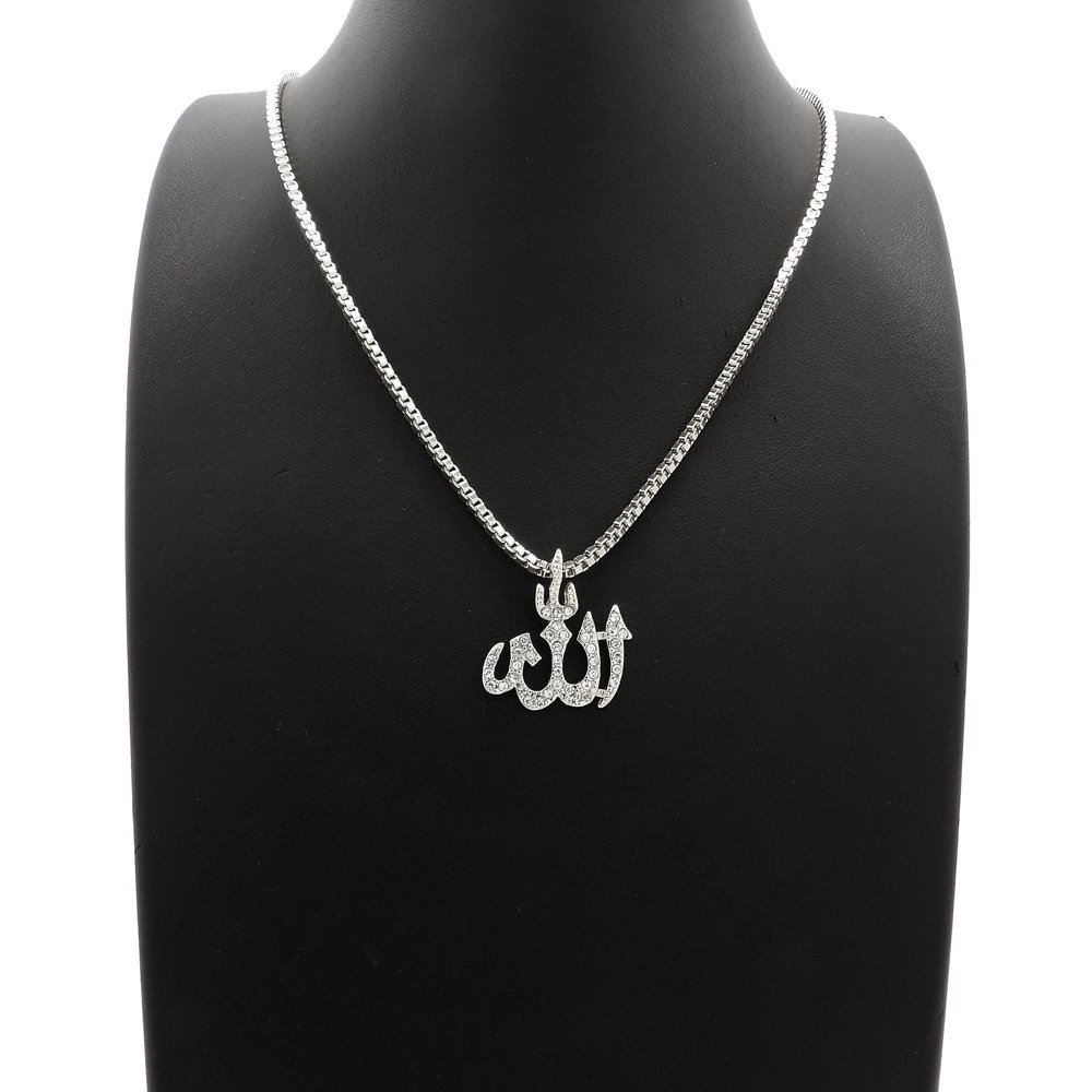 Allah chain silver Clearance, Solid 925 Silver Mens Large Allah Muslim Islamic Pendant Chain Iced Icy Hip Hop Clearance
