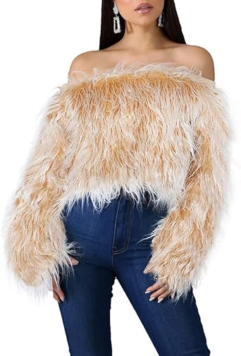 Womens shaggy sweater Clearance, Forever2 Womens Shaggy Fringe Tan Clearance