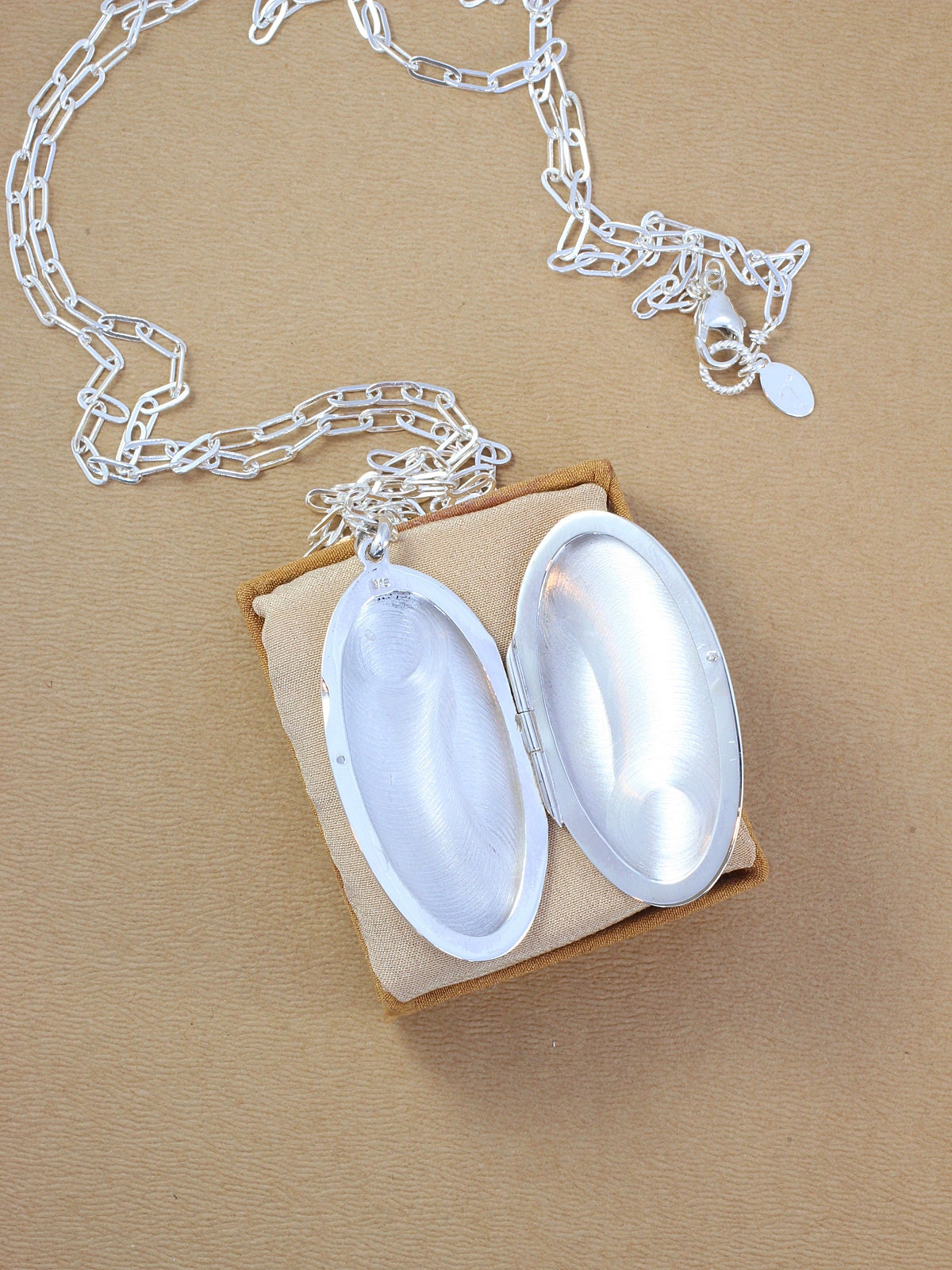 Long chain locket necklace Clearance, Large Contemporary Sterling Silver Locket Necklace, Plain Elongated Oval on Long Special Chain Clearance