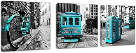 Turquoise london Clearance, Teal London City Canvas Wall Art Blue Clearance