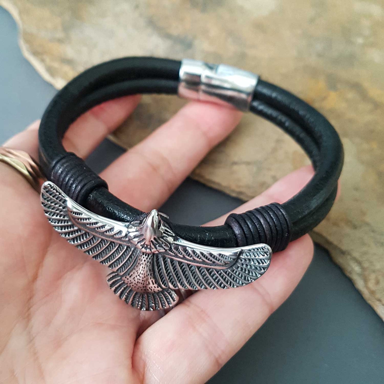 Mens eagle bracelet Clearance, Mens Eagle Bracelet Black Leather Braceletpersonalised Cuff - Etsy UK Clearance